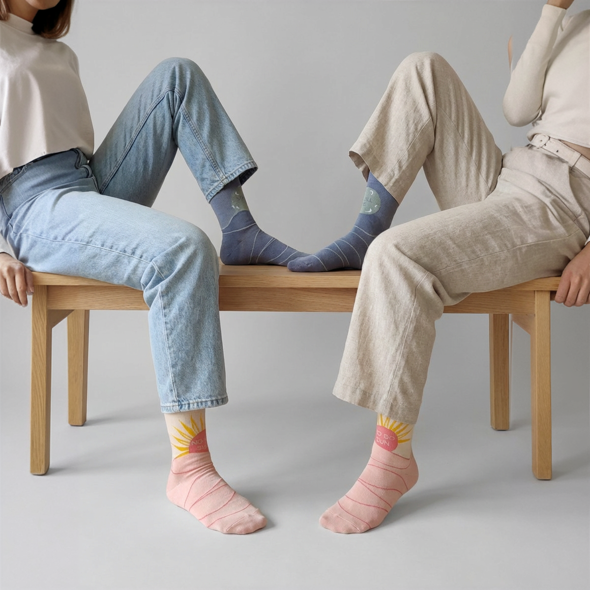One sock features a warm, rising sun. The other glows with the cool light of the moon. Together, they whisper a message many need to hear: