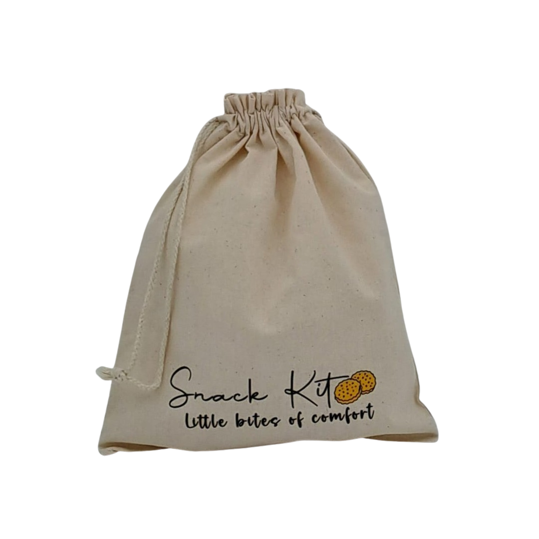 The Snack Kit (24 x 29 cm) is a soft, durable reusable-cotton pouch that helps you stay prepared wherever the day takes you — at home, school, work, on the road, or while traveling.